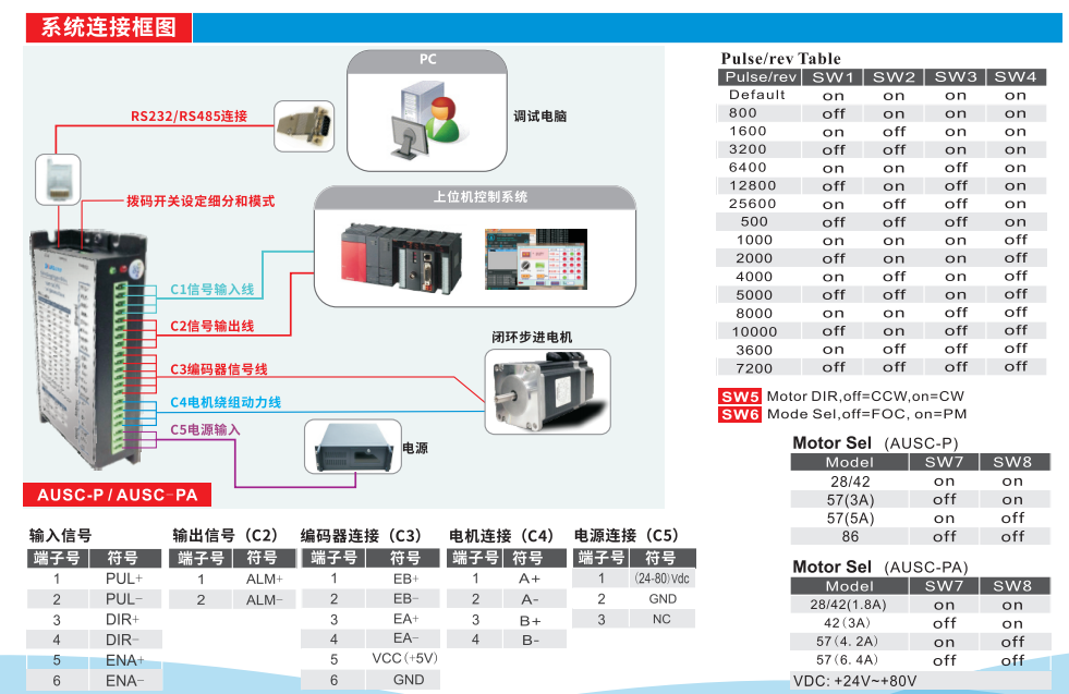 工作電壓:直流輸入電壓24VDC~80VDC,推薦工作電壓48V 連續(xù)輸出電流最大值8.2A,最大峰值電流13A(先進(jìn)的步進(jìn)伺服過載能力) 可接受差分和單端式脈沖/方向指令,控制指令最大脈沖頻率為500KHz(出廠默認(rèn)為200KHz) 脈沖,方向和使能信號(hào)輸入接口電平為4.5-28V兼容 采用FOC磁場(chǎng)定位控制技術(shù)和空間矢量脈寬調(diào)制(SVPWM)閉環(huán)控制技術(shù) 采用了先進(jìn)的變電流技術(shù)和變頻技術(shù),有效的降低了電機(jī)和驅(qū)動(dòng)器的發(fā)熱 每圈脈沖數(shù)可通過調(diào)試軟件或拔碼設(shè)定(細(xì)分) 具有過壓、欠壓、過流和超差等保護(hù)功能 具有串口RS232調(diào)試功能,但需使用本公司專用的串口調(diào)試線聯(lián)系艾而特
